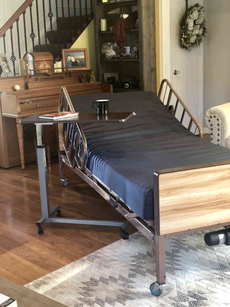 -A full electric hospital bed is a medical adjustable bed with adjustments for the head angle, foot height, and height of the entire bed with the use of a remote control.