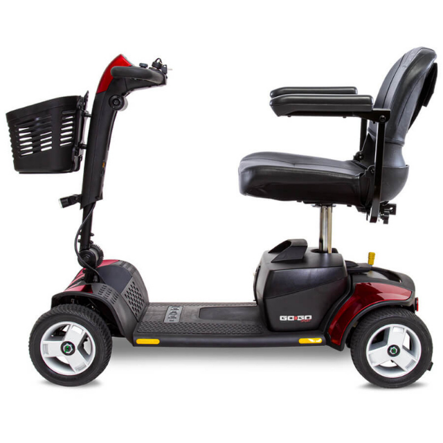 Go Faster. Go Farther. The Pride Go-Go SPORT comes with larger batteries, larger tires, and a larger basket standard on this wonderful transport scooter.